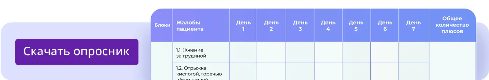 Врач оценивает результаты по 5 блокам, объединяющим симптомы ФД и ГЭРБ. На схеме ниже представлены ключевые диагностические группы, позволяющие быстро определить ведущий синдром.