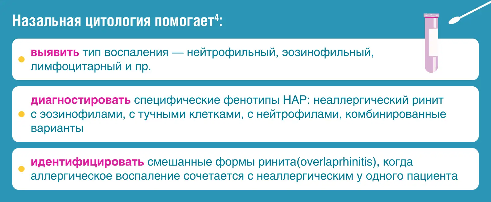 Ринит — заболевание разной этиологии: инфекционной, аллергической, нейровегетативной, лекарственной, гормональной [1]. Определить фенотип заболевания, особенно при хроническом течении или в случаях персистирующего аллергического ринита (АР), непростая задача. В ряде случаев для этого применяются нерутинные методы диагностики.