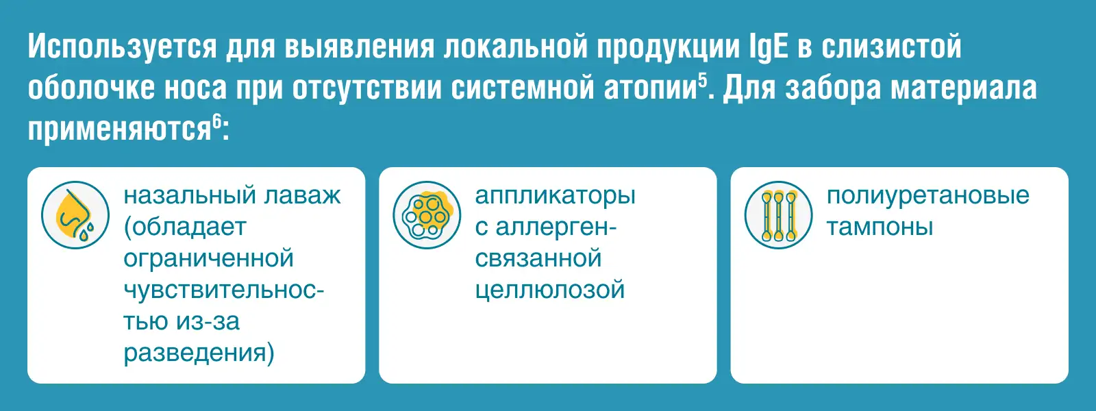НАПТ позволяет выявить локальную сенсибилизацию у пациентов с отрицательными кожными тестами и сывороточными специфическими иммуноглобулинами класса E (IgE), дифференцировать локальный аллергический ринит (ЛАР) от НАР, а также диагностировать профессиональный ринит, например, при воздействии низкомолекулярных веществ (изоцианатов), когда стандартные тесты отрицательны [4].
