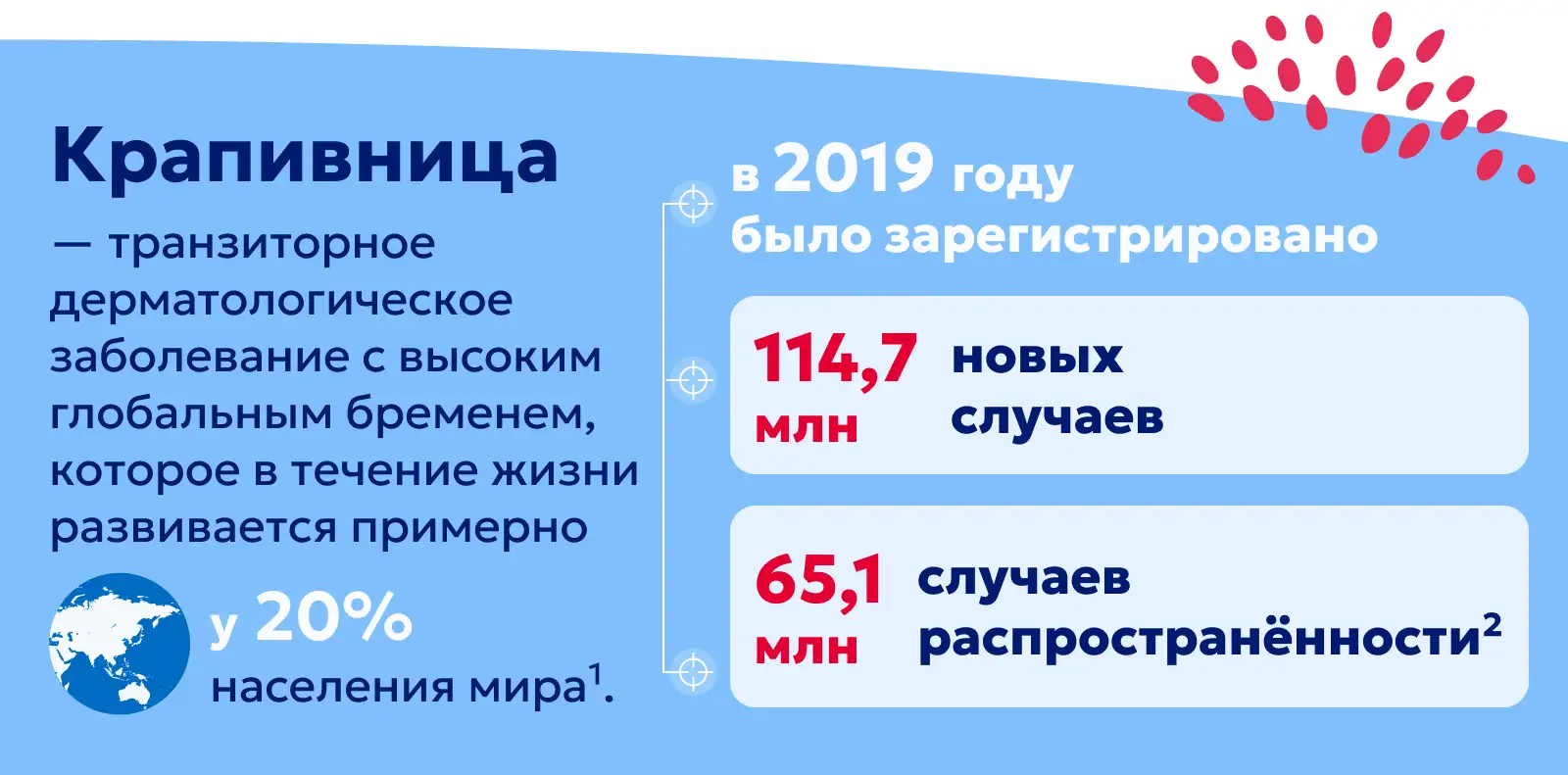 2. Pu Y. et al. Global, regional, and national levels and trends in burden of urticaria: A systematic analysis for the Global Burden of Disease study 2019 //Journal of Global Health. – 2024. – Т. 14. – С. 04095.