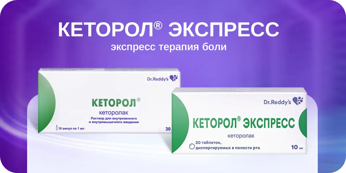 В подобных случаях может подойти препарат с быстрым началом действия и хорошей переносимостью, например, Кеторол® Экспресс, который обеспечивает эффект уже через 10 минут и не требует запивания водой [5],[6].