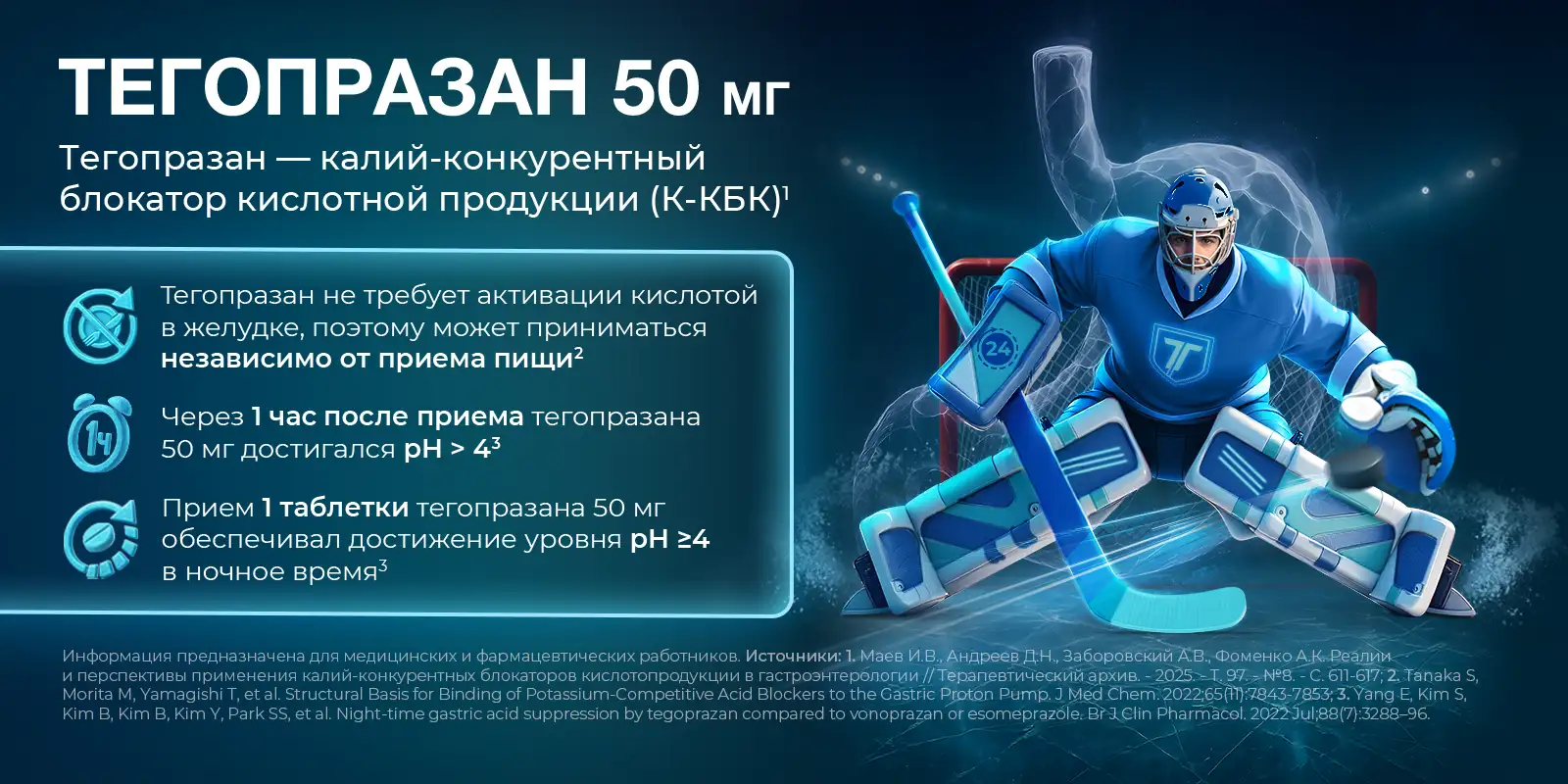 3. Takahashi N., Take Y. Tegoprazan, a novel potassium-competitive acid blocker to control gastric acid secretion and motility //The Journal of pharmacology and experimental therapeutics. – 2018. – Т. 364. – №. 2. – С. 275-286.