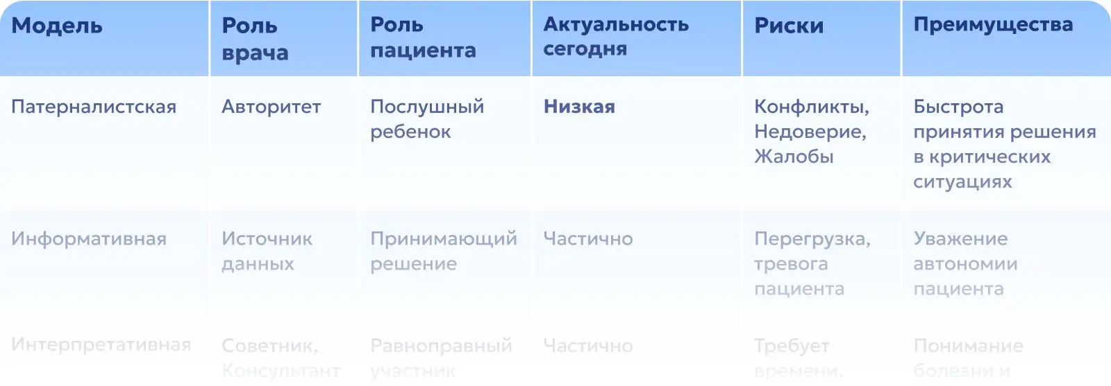 Представляем вашему вниманию два инструмента для «прокачки» современных навыков общения с пациентами: памятка и короткий «диагностический» тест. С их помощью можно понять, какую коммуникативную модель, в основном, используете Вы, какие приемы позволяют это общение сделать легче и эффективней.