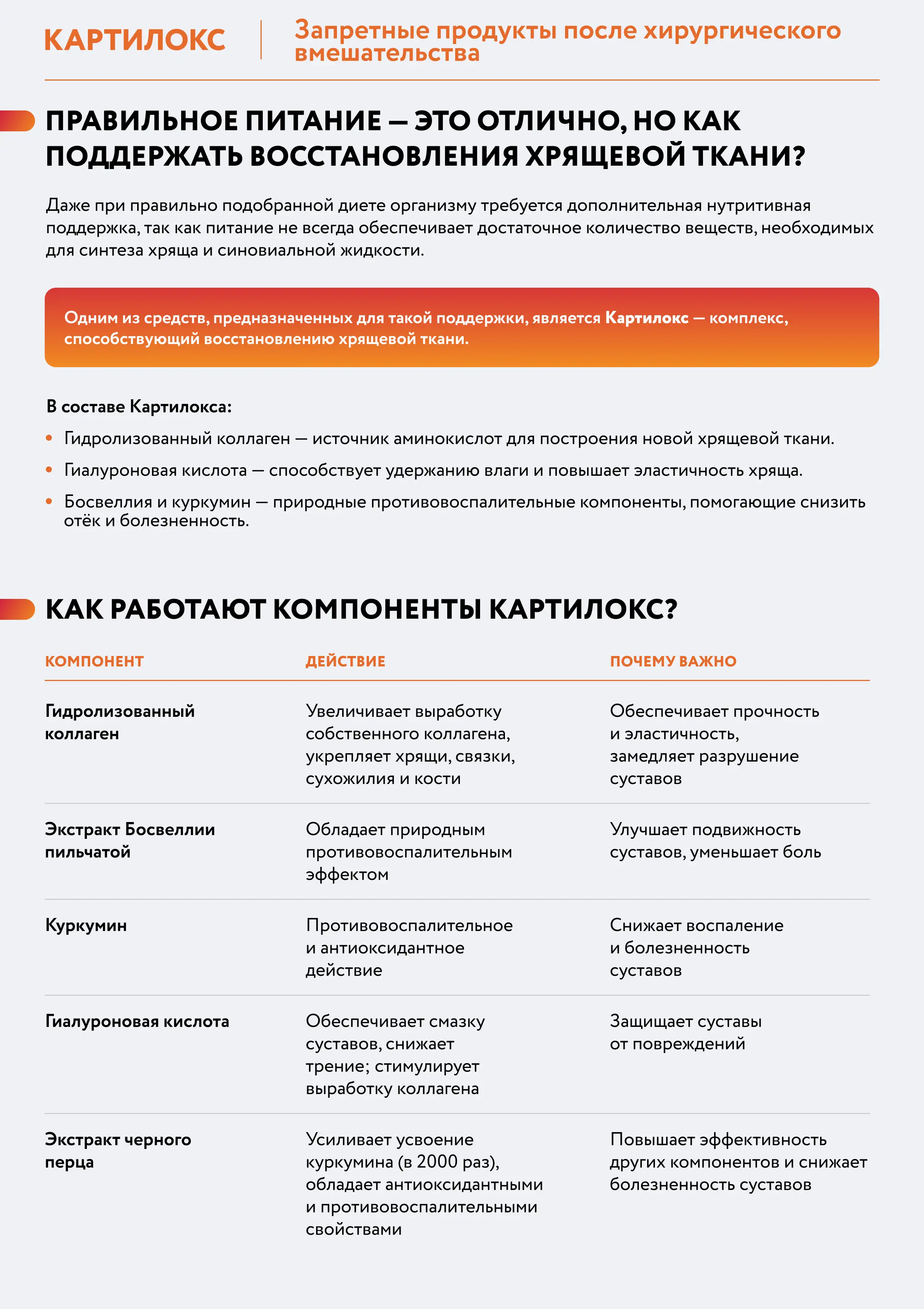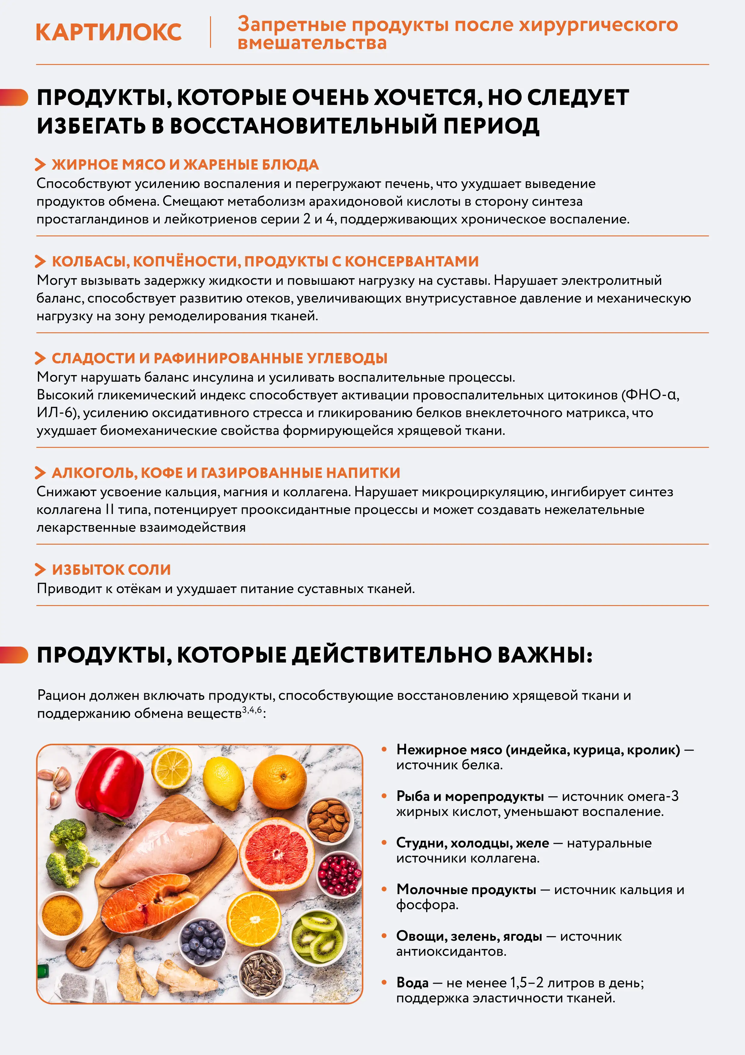 После хирургических вмешательств, направленных на восстановление суставного хряща, важнейшую роль играет рацион питания. От него зависит скорость заживления, выраженность воспаления и качество регенерации хрящевой ткани