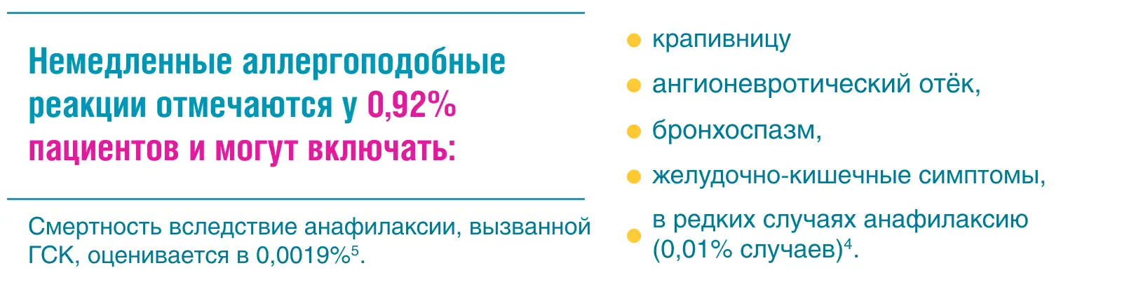 Несмотря на широкое использование и относительно благоприятный профиль безопасности, частота острых нежелательных реакций на ГСК может достигать 0,9% [4]. В то же время в последние годы наблюдается рост числа реакций гиперчувствительности, что связано с увеличением применения МРТ с контрастным усилением и ростом общего числа таких исследований во всём мире [5].