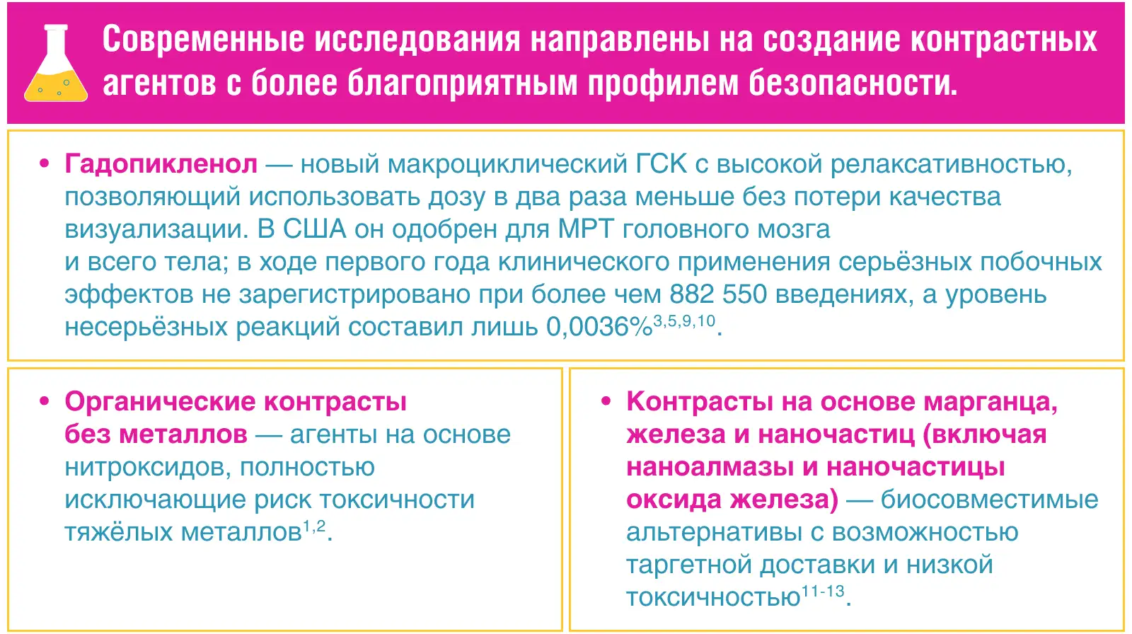 10. Kuhl C. et al. Efficacy and safety of half-dose gadopiclenol versus full-dose gadobutrol for contrast-enhanced body MRI //Radiology. – 2023. – Т. 308. – №. 1. – С. e222612.