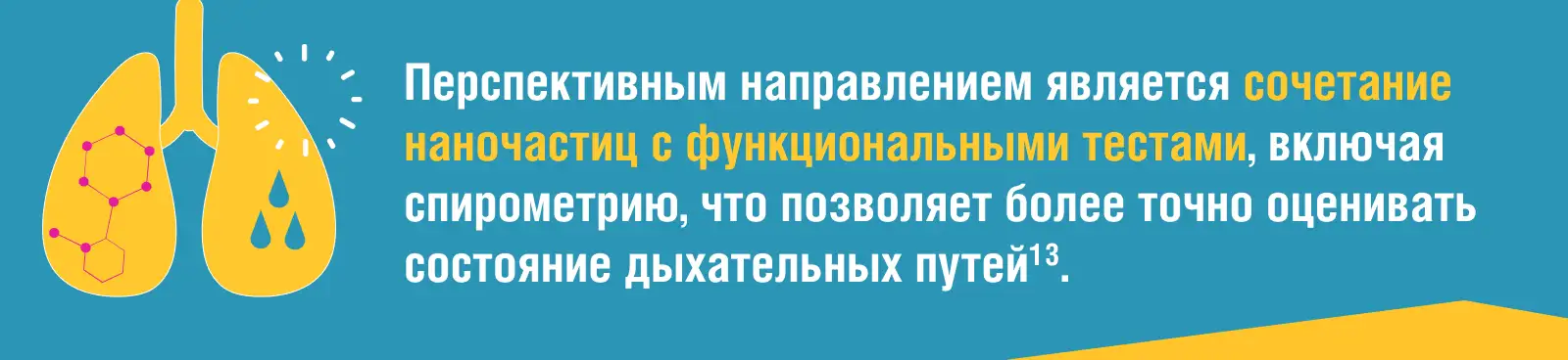 Современные нанотехнологии открывают новые возможности для ранней диагностики аллергических заболеваний дыхательных путей. Использование функционализированных наночастиц повышает точность визуализации воспалённых тканей при МРТ и КТ, а наносенсоры улучшают определение биомаркеров, таких как оксид азота в выдыхаемом воздухе [13].