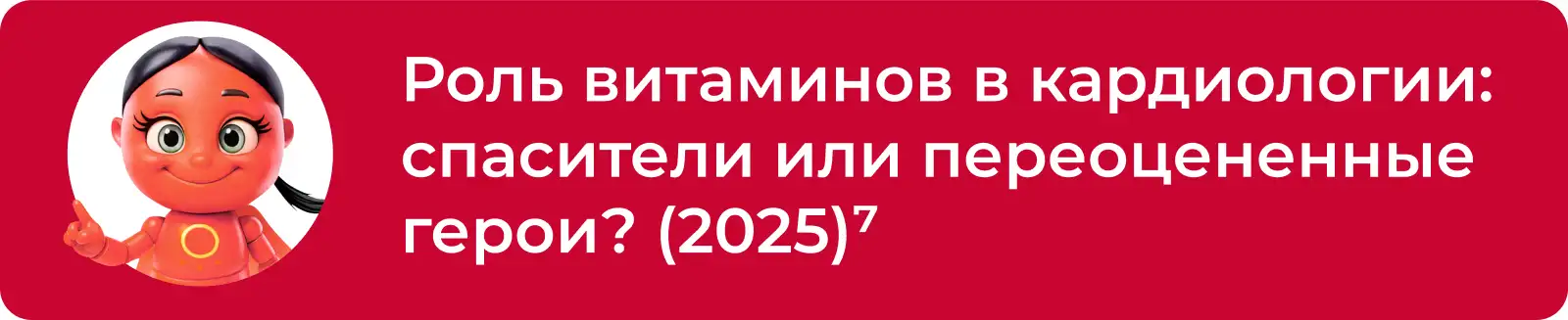 7. Роль витаминов в кардиологии: спасители или переоцененные герои? // Медзнат. — 2025. — Режим доступа: https://www.medznat.ru/education/practice-management/rol-vitaminov-v-kardiologii-spasiteli-ili-pereoc (дата обращения: 20.08.2025).