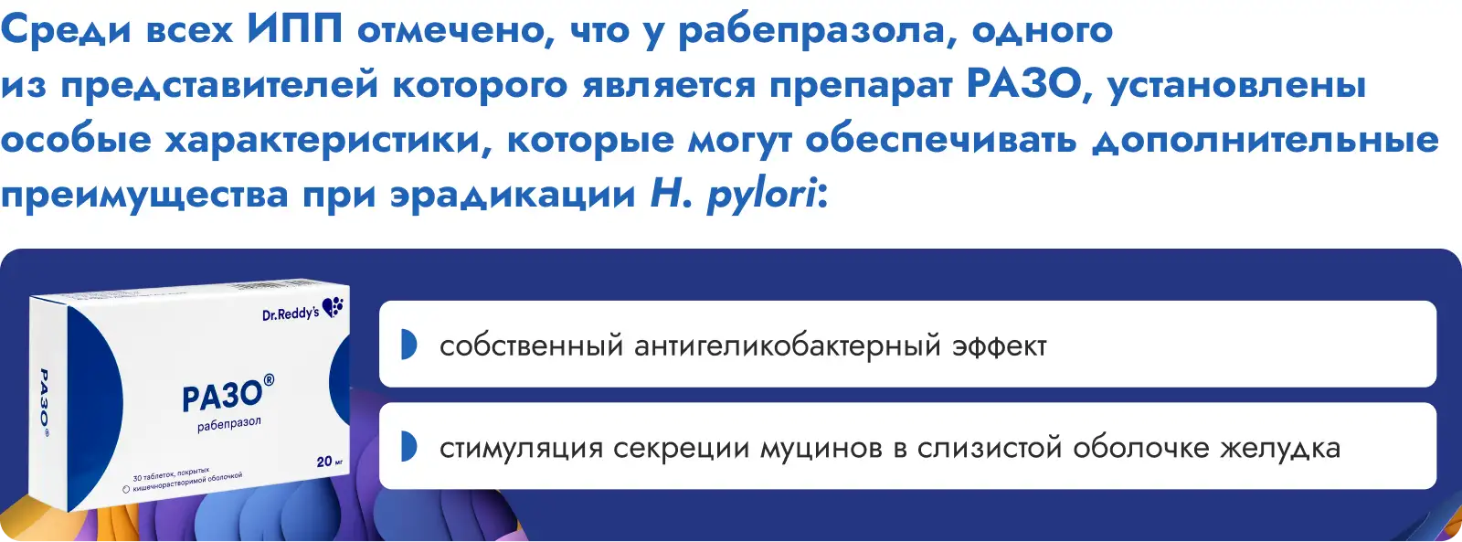 Кроме того, высокая результативность рабепразола мало зависит от фенотипически детерминированных вариантов печеночного метаболизма.