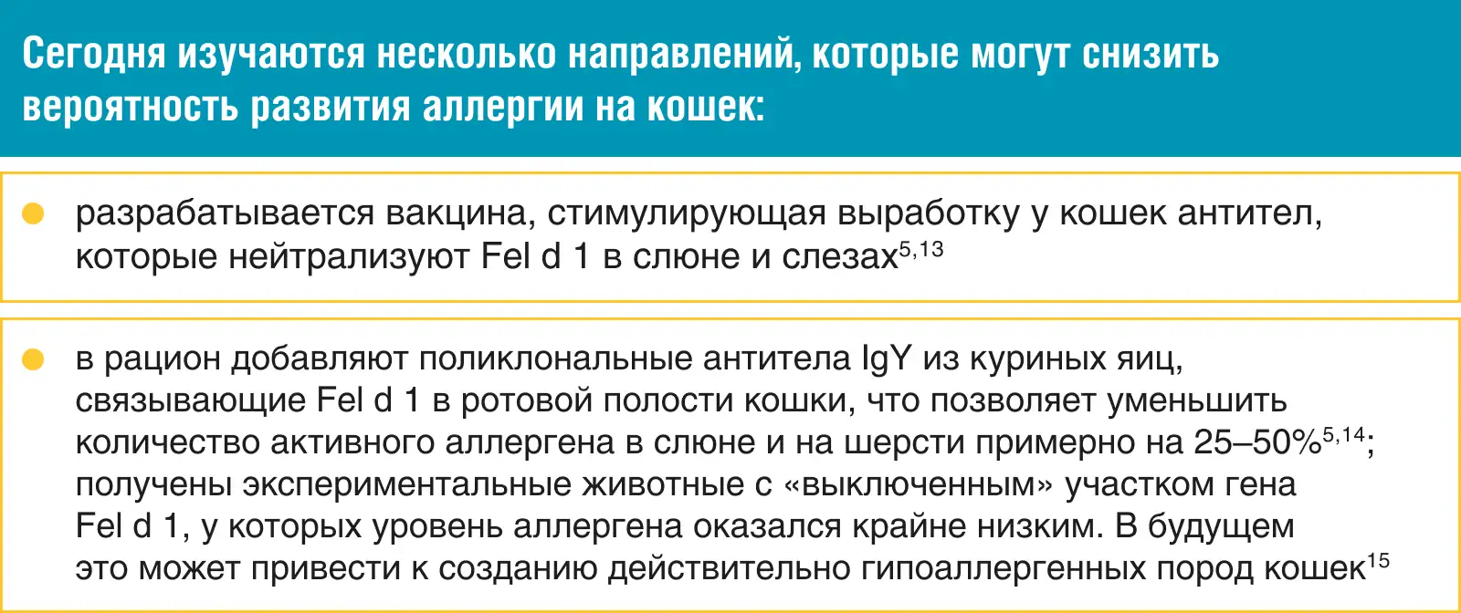 С кошками ситуация аналогичная. Да, некоторые особи выделяют меньше Fel d 1, но пород, которые не вырабатывали бы этот аллерген, просто нет [12].