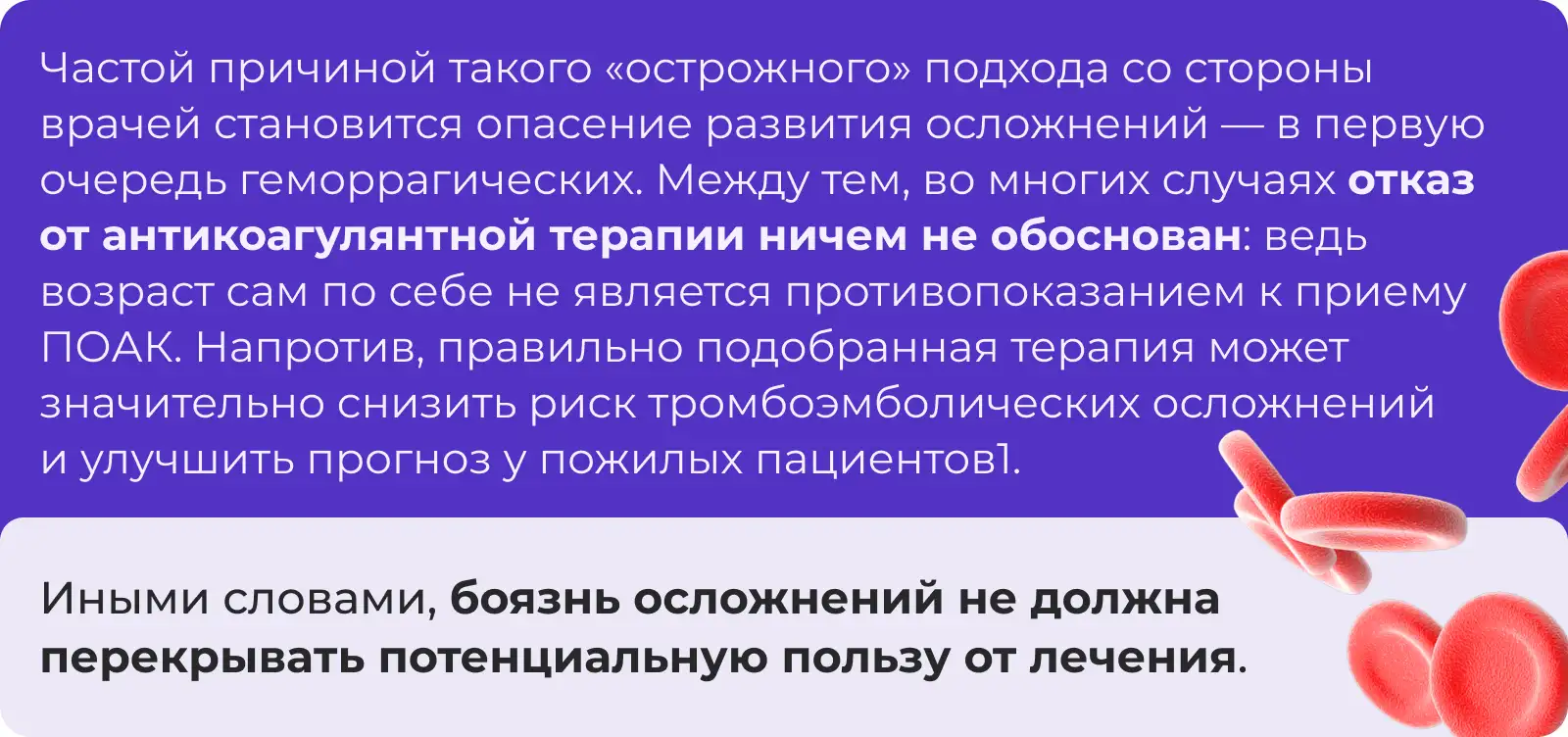 Но он знает: несмотря на доказанную эффективность, безопасность и ориентированность на пациента, приверженность к антикоагулянтной терапии часто снижается. Причинами этого становятся частота приема, сложность дозирования, форма и даже вкус препарата.