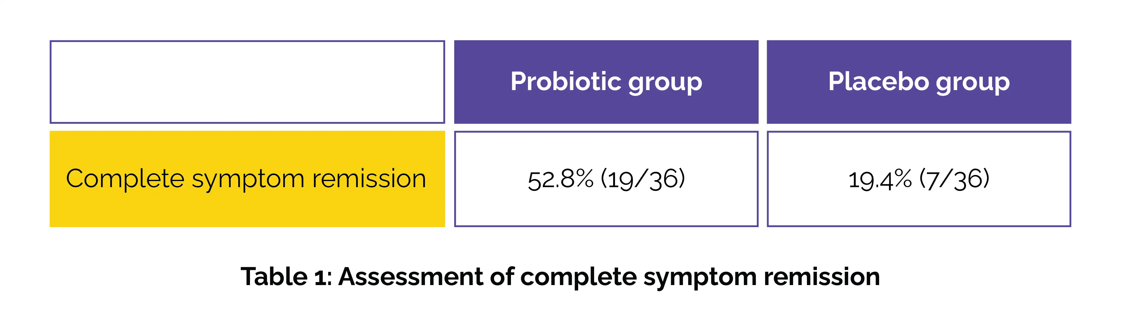 Symptom assessments were conducted at 4-week intervals using validated scales: Life Interference Score (LIS), Pain Frequency Score (PFS), Pain Intensity Score (PIS), and the IBS Symptom Severity Scale (IBS-SSS). Bowel habits were evaluated via the Bristol Stool Chart (BSC). By week 12, the probiotic group exhibited higher complete symptom remission when compared to the placebo group (odds ratio 0.216), as shown in Table 1: