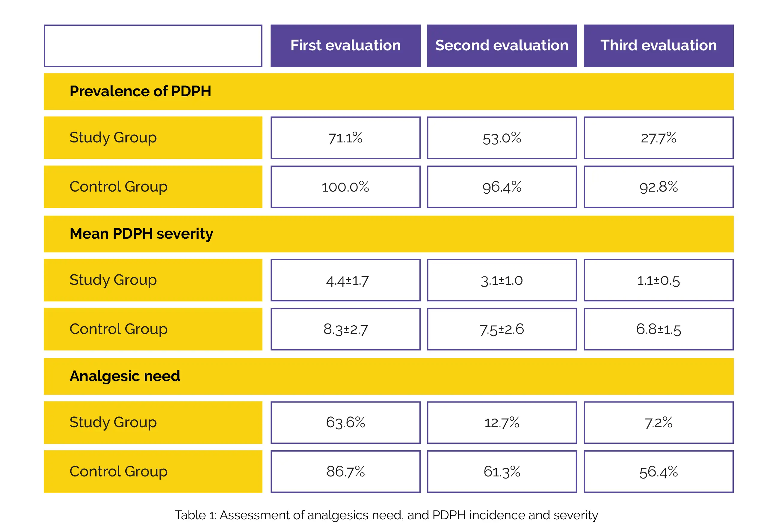 Hence, there were significant differences in favor of the study group when compared to the control group in relation to PDPH incidence, severity, and analgesics need.