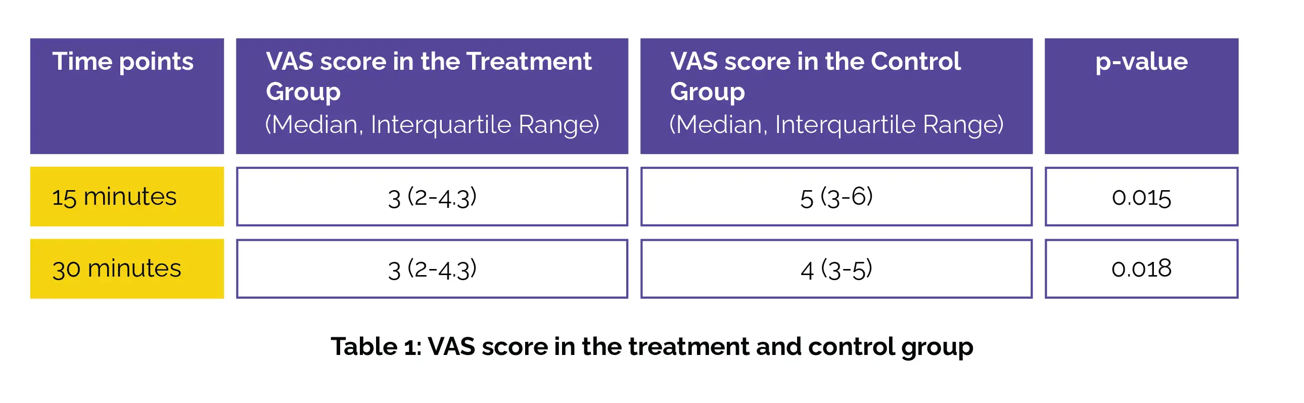 The VAS scores (Table 1) and opioid rescue dose requirements were considerably lower in the treatment than in the control group after recovery room admission.