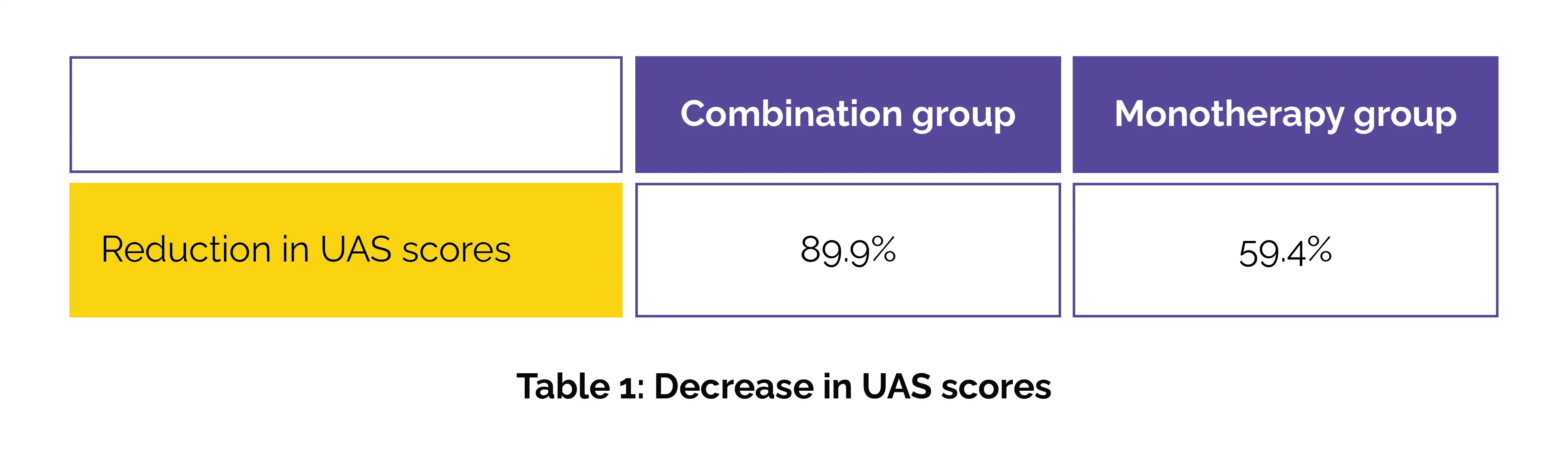 UAS7 scores—a key measure of urticaria severity—were tracked weekly for 6 weeks. The primary outcome focused on changes in UAS scores, while secondary outcomes included symptom control and safety monitoring. The findings were compelling. By the 6th week, the combination group showed a higher reduction in UAS scores when compared to the monotherapy group (Table 1).
