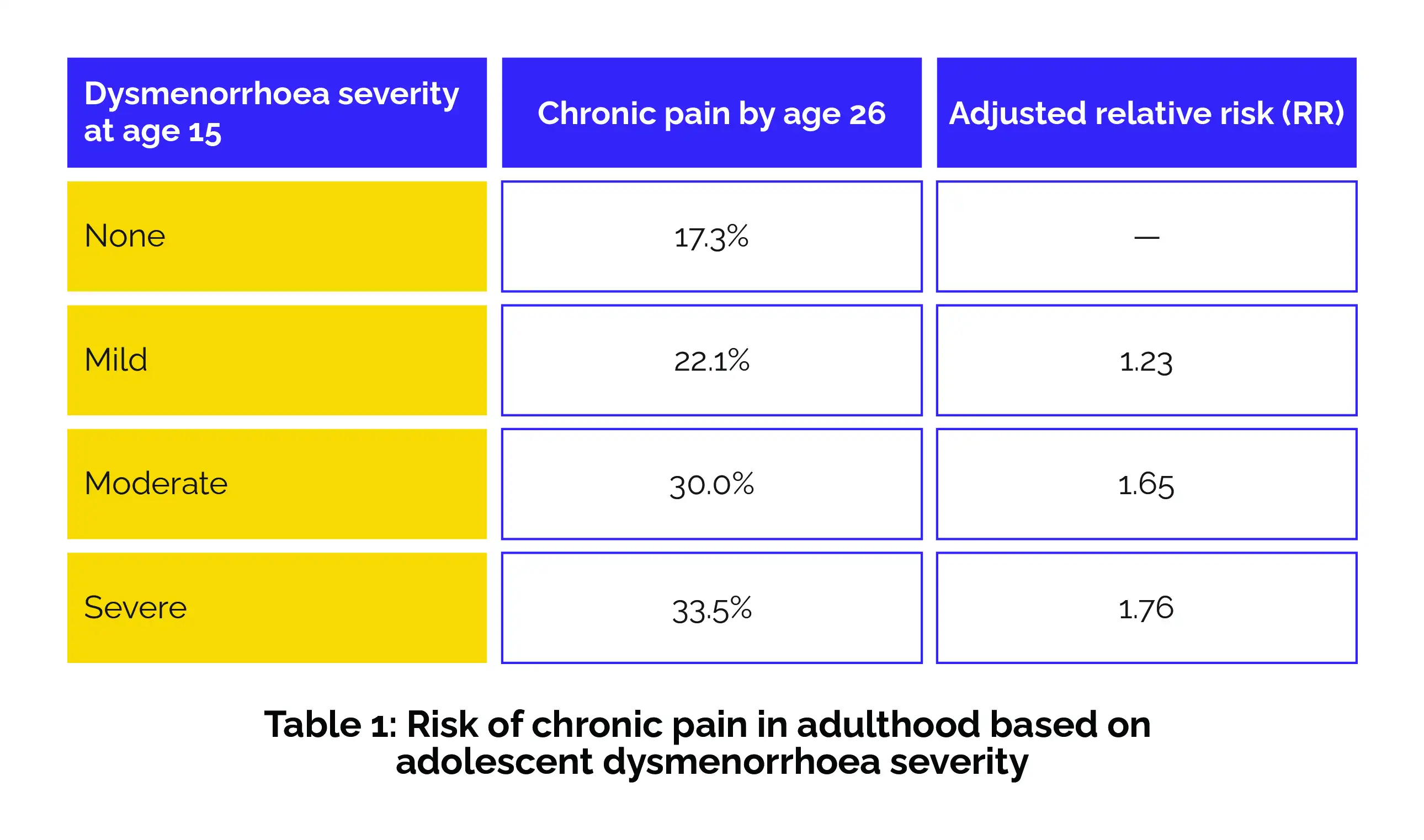 Moderate-to-severe period pain at age 15 increases the likelihood of chronic pain at age 26 by up to 76%.