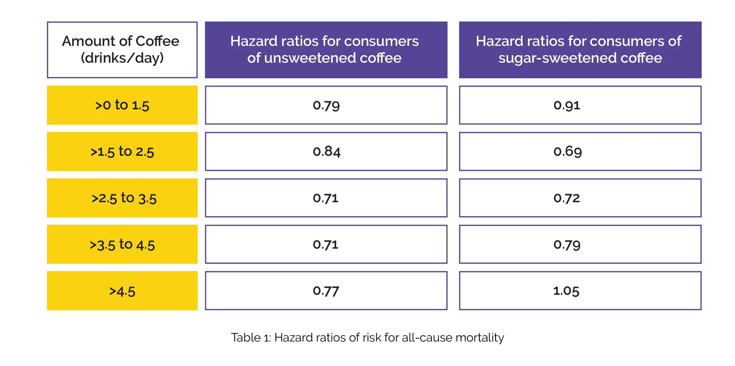 Moderate consumption of sugar-sweetened and unsweetened coffee was linked with a reduction in death risk.