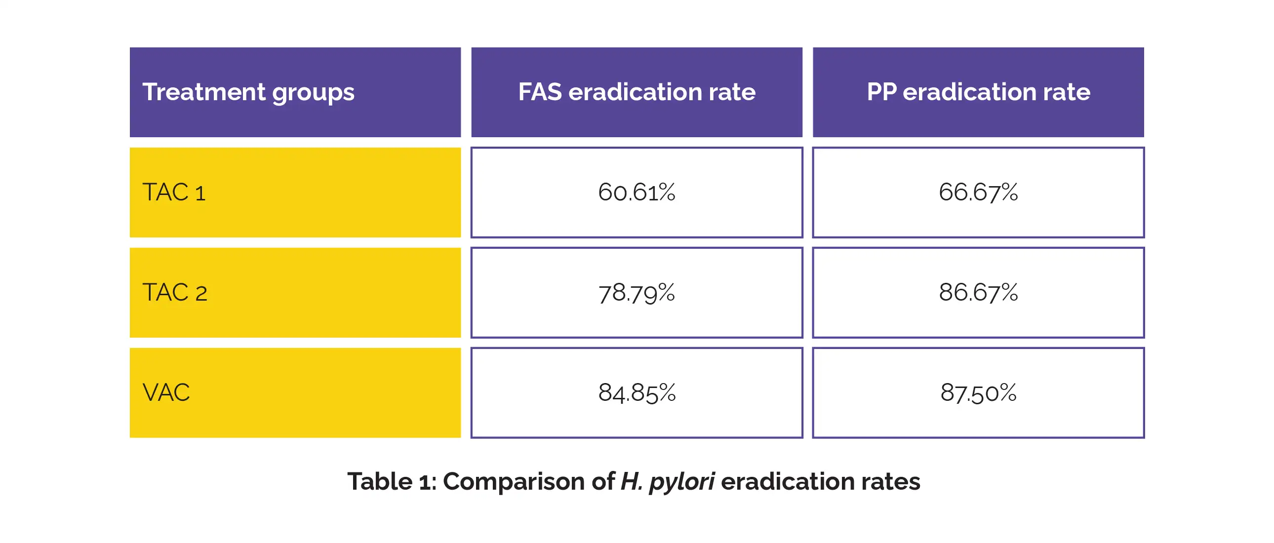 The primary endpoint was the H. pylori elimination rate assessed using the full analysis set (FAS) and the per-protocol (PP) set.