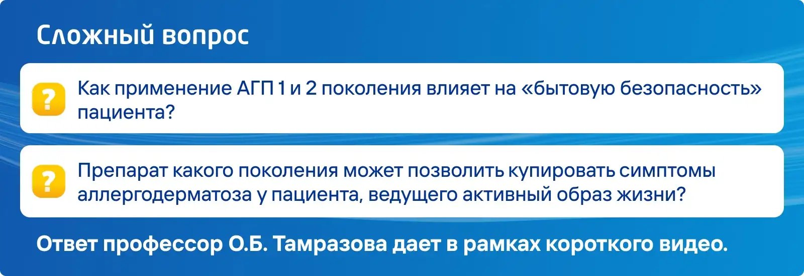Профессора Ольга Борисовна Тамразова и Геннадий Айзикович Новик поделись своей тактикой работы с антигистаминными препаратами (АГП) первого и второго поколения.