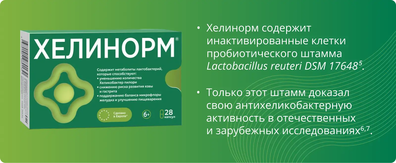 В России БАД, содержащий штамм Lactobacillus reuteri DSM 17648, только один — это метабиотик Хелинорм®[5]