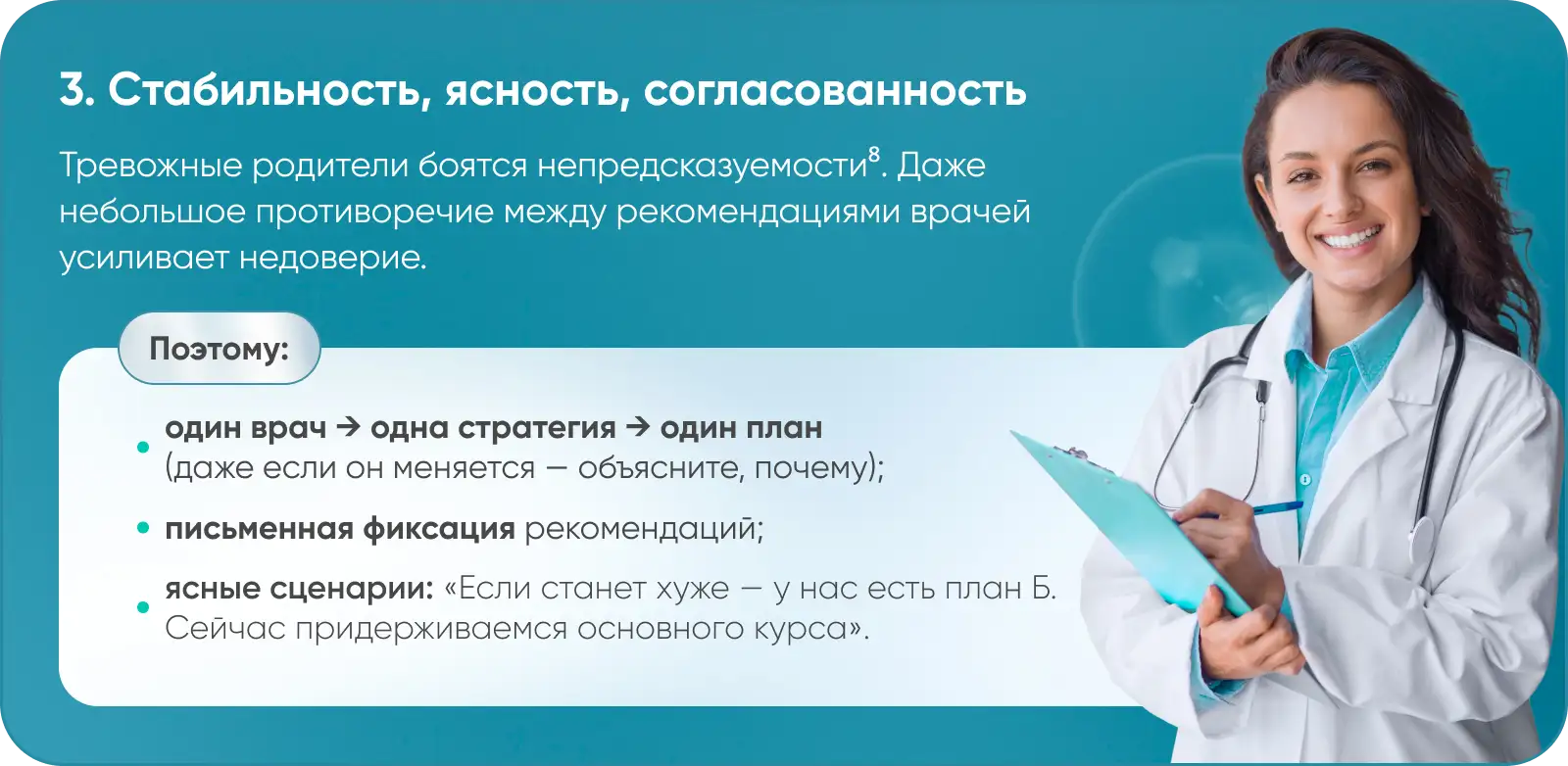 В итоге запускается замкнутый круг: детская тревога может усиливать симптомы и провоцировать обострения АтД. Именно поэтому так важно выстраивать содержательный и поддерживающий диалог с тревожными родителями.
