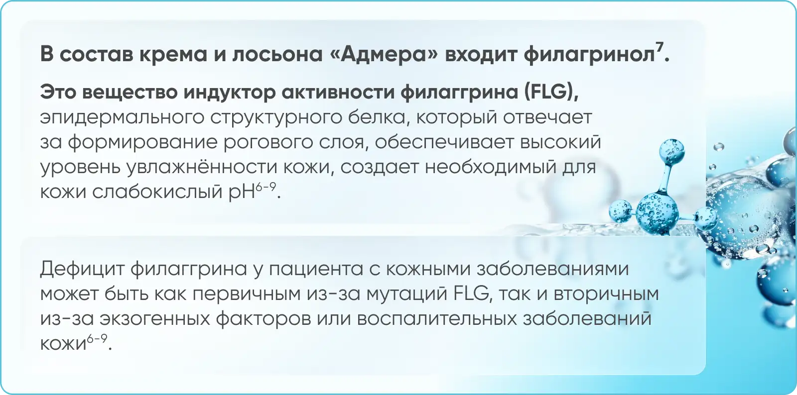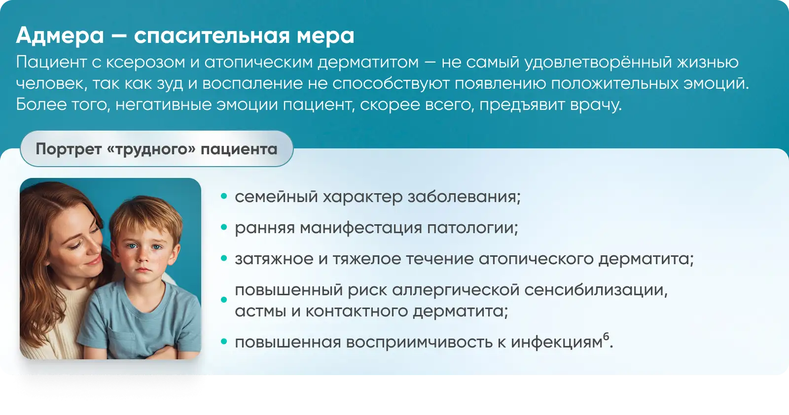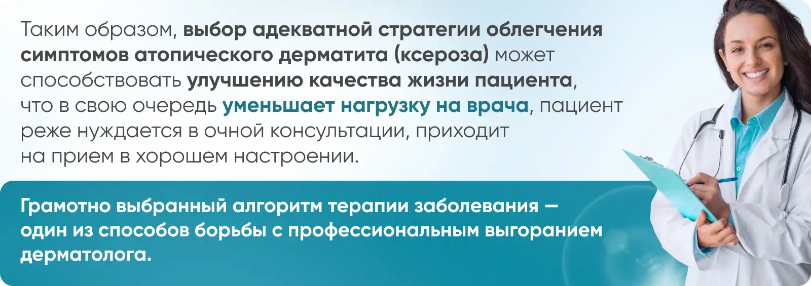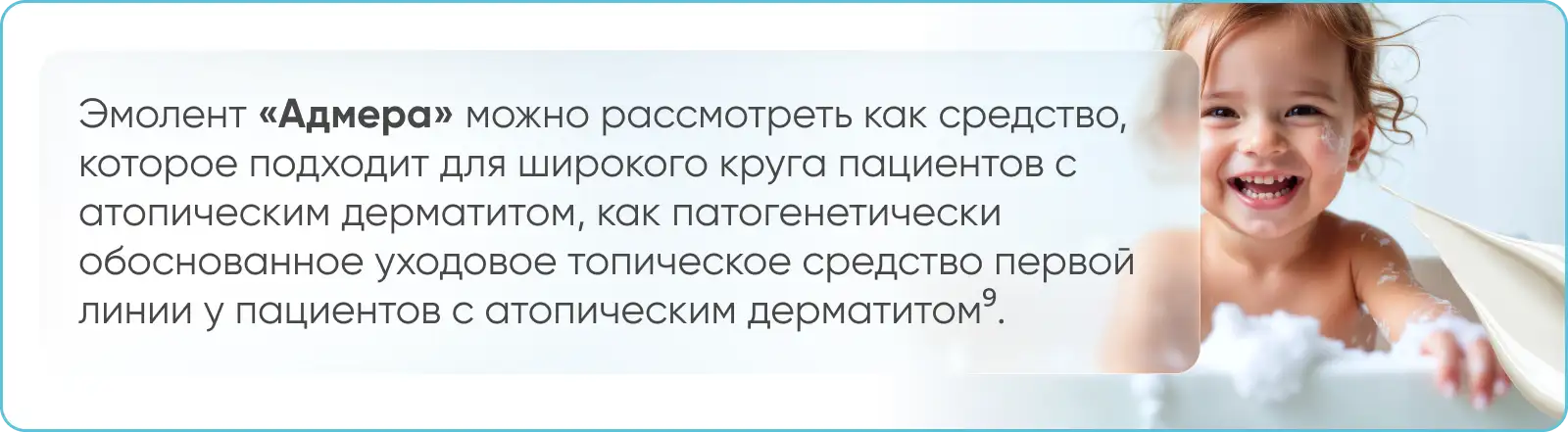 Чтобы облегчить тягостные, хронические симптомы, важно подобрать действенную схему терапии. Комплексная схема лечения может включать применение современного эмолента «Адмера» [7].