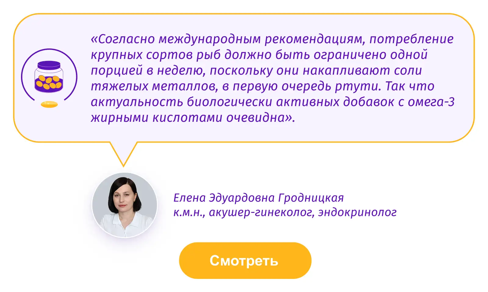Омега-3 жирные кислоты не синтезируются в организме, поэтому их необходимо получать извне — через пищу (крупные сорта рыб) или добавки⁸.