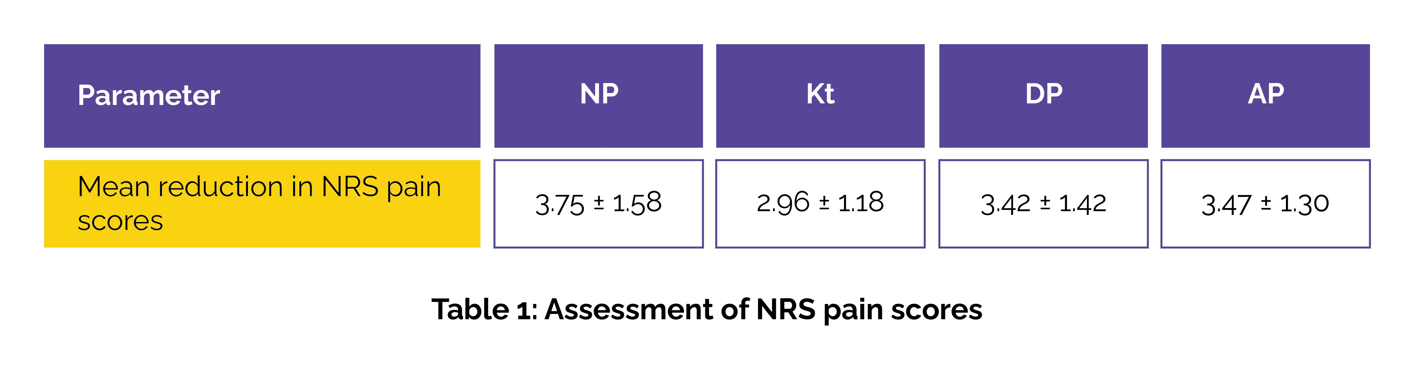 NP, DP, and AP were given twice daily, while Kt was given three times daily. Pain reduction and safety outcomes (cardiovascular, gastrointestinal, hepatic, and renal parameters) were assessed on days 7 and 14.