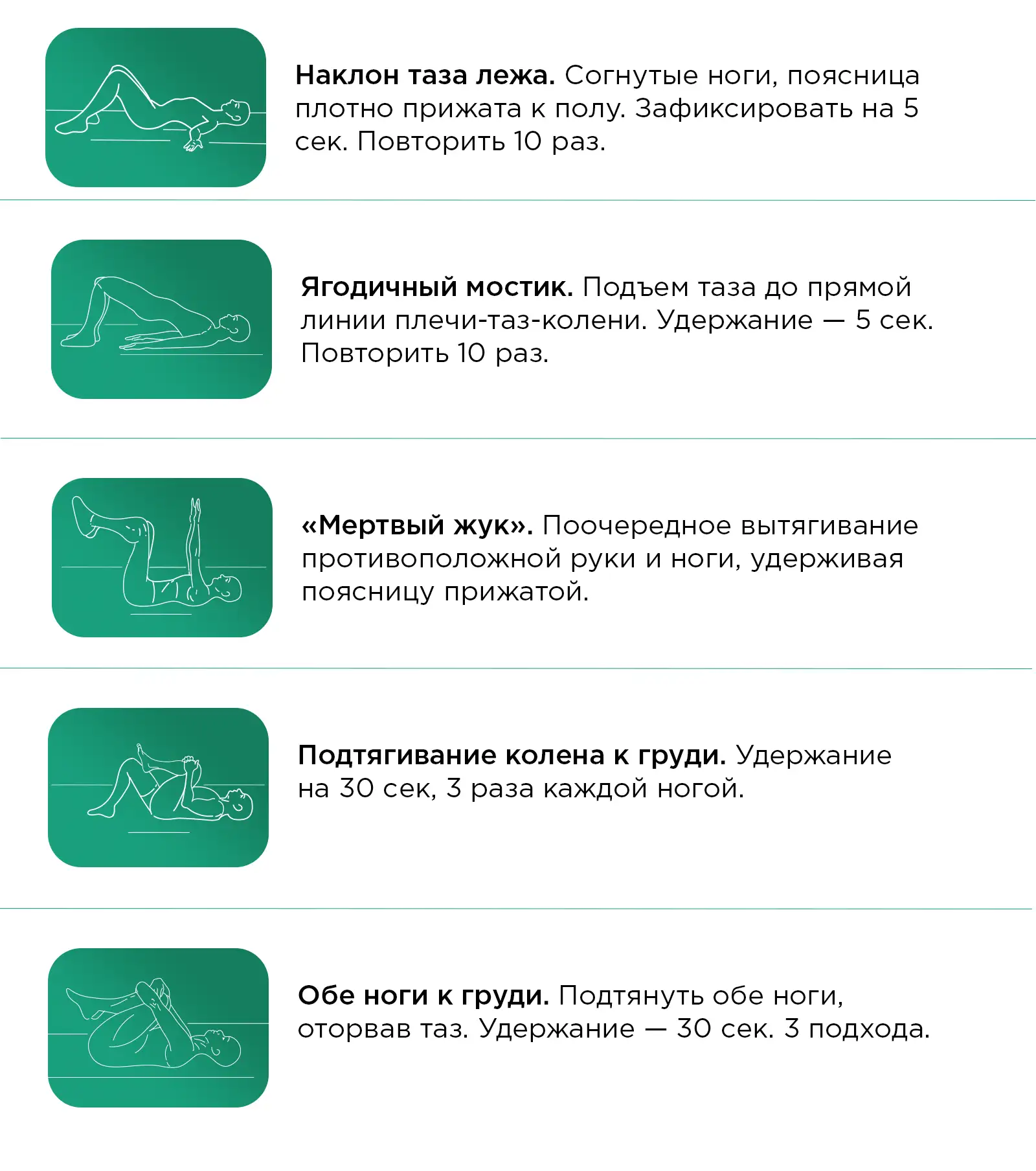 Одним из эффективных методов лечения являются специальные упражнения, которые выполняются на твердой поверхности, без боли [18].