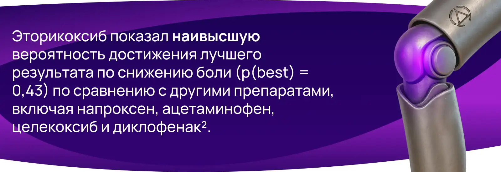Эторикоксиб — селективный ингибитор циклооксигеназы-2 (ЦОГ-2) — проявляет не только заявленную, но и клинически подтверждённую обезболивающую активность. Однако его потенциальные клинические эффекты этим не исчерпываются.