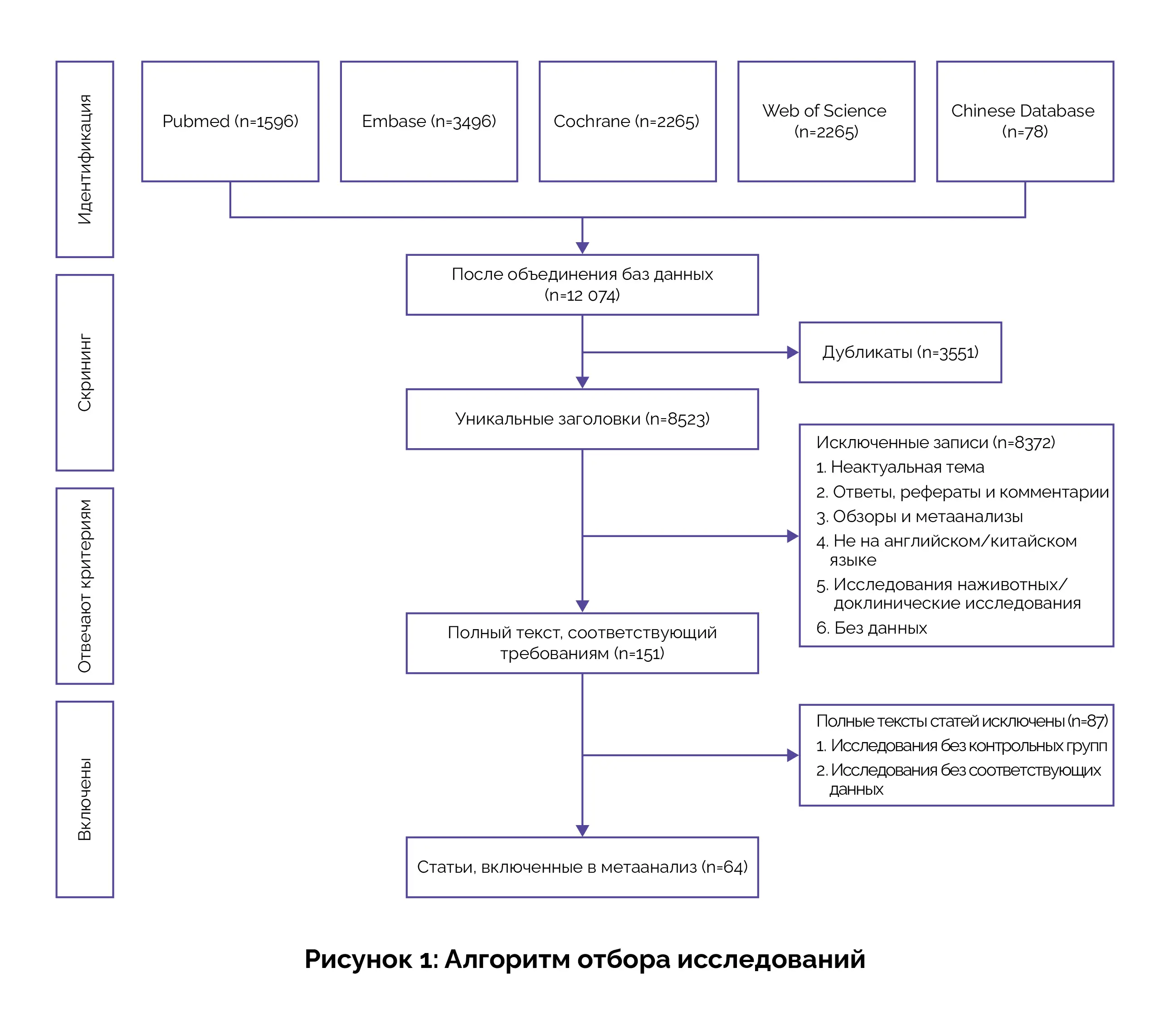 Был проведен комплексный систематический поиск в базах данных PubMed, Cochrane Library, Embase, Web of Science и китайских базах данных, включая Китайскую национальную инфраструктуру знаний (China National Knowledge Infrastructure, CNKI), WangFang и VIP (база данных китайских научно-технических журналов) по состоянию на октябрь 2024 года.