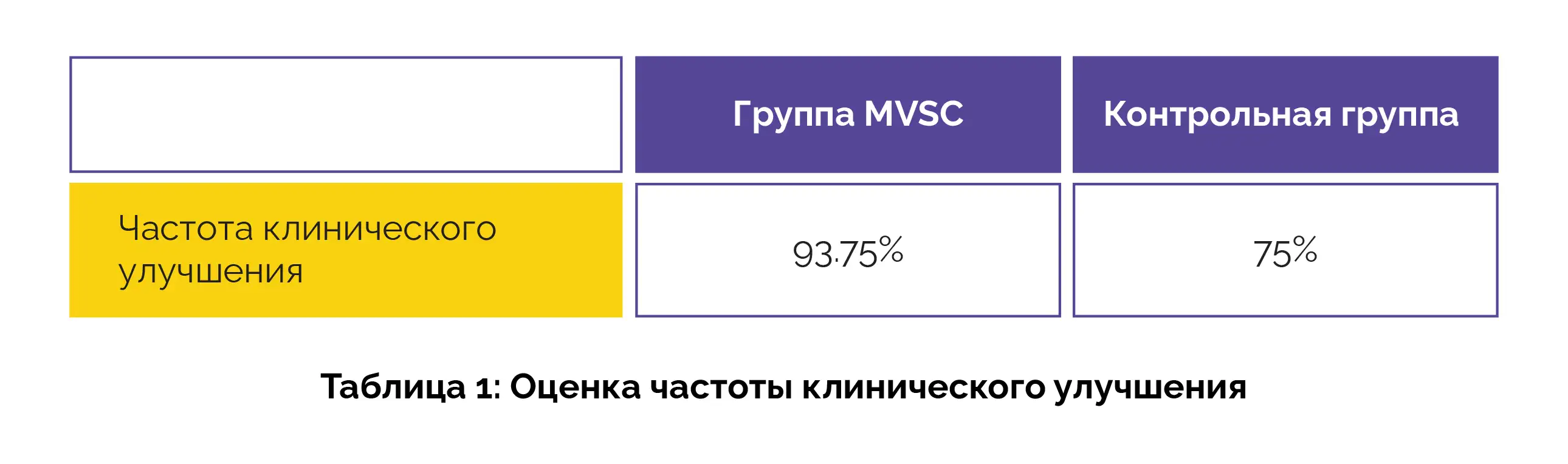 В группе MVSC частота клинического улучшения была заметно выше по сравнению с контрольной группой (таблица 1).