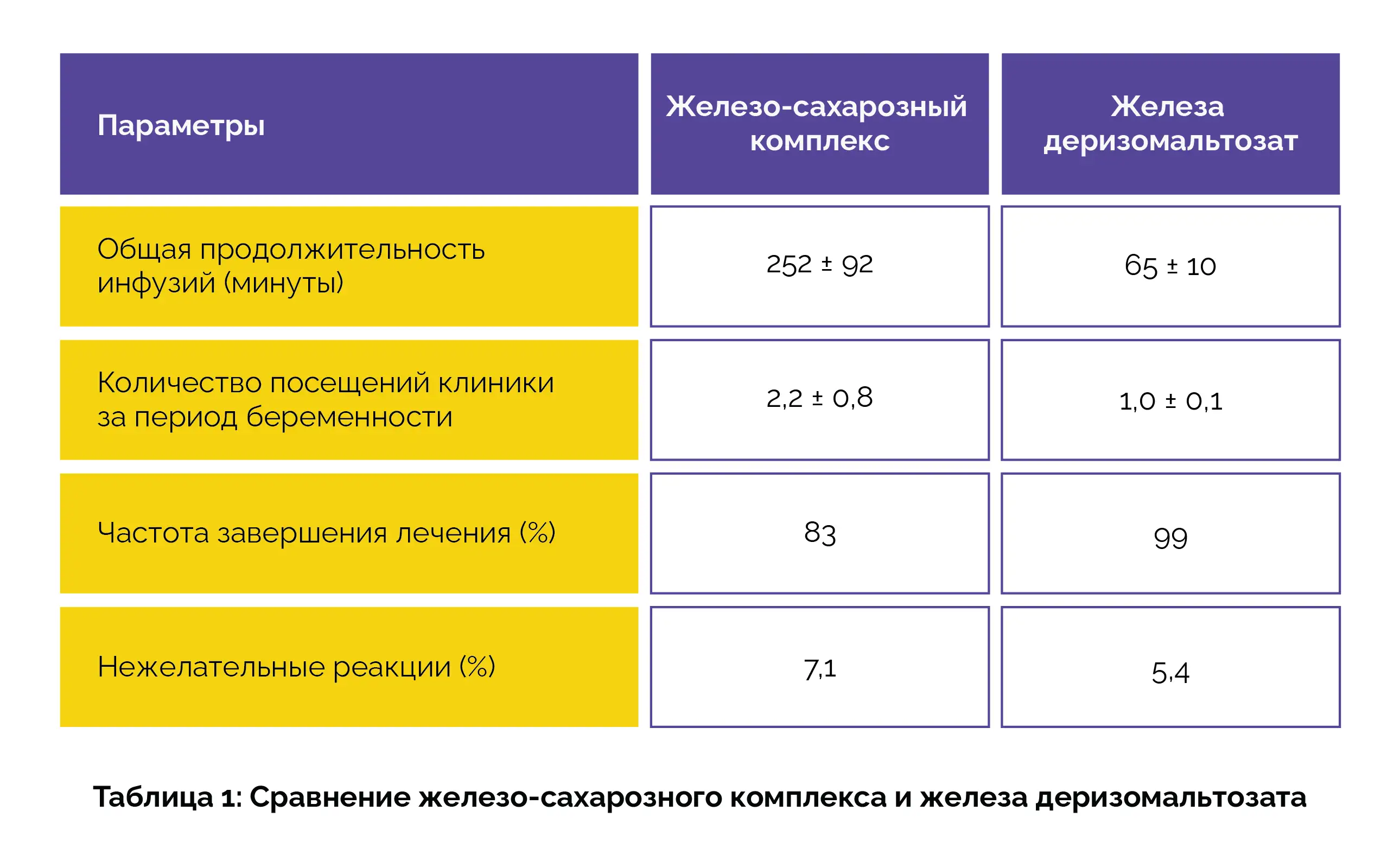 Сравнение железа деризомальтозата и железо-сахарозного комплекса при внутривенной терапии препаратами железа во время беременности