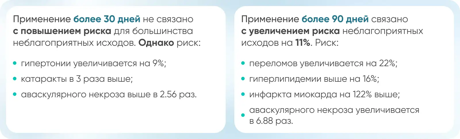 Пациентам с АД необходимо контролировать длительность применения пероральных кортикостероидов, особенно если лечение продолжается более 90 дней.