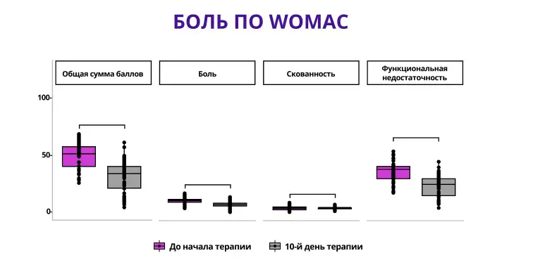 Таким образом, терапия демонстрировала выраженную положительную динамику уже к 5-му и 7-му дню, однако именно полный 10-дневный курс позволил достичь максимального снижения боли и наиболее стойкого результата.