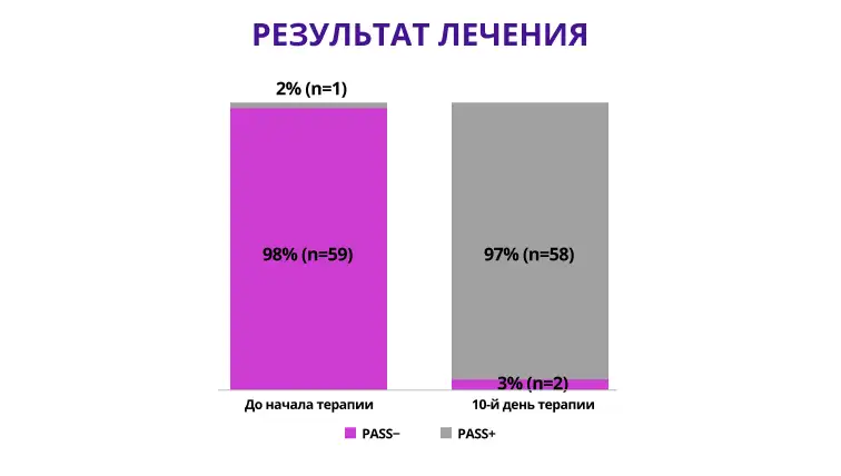 После 10 дней лечения положительный показатель удовлетворенности пациента своим состоянием (PASS) был зафиксирован у подавляющего большинства пациентов — 97% (рис. 3).