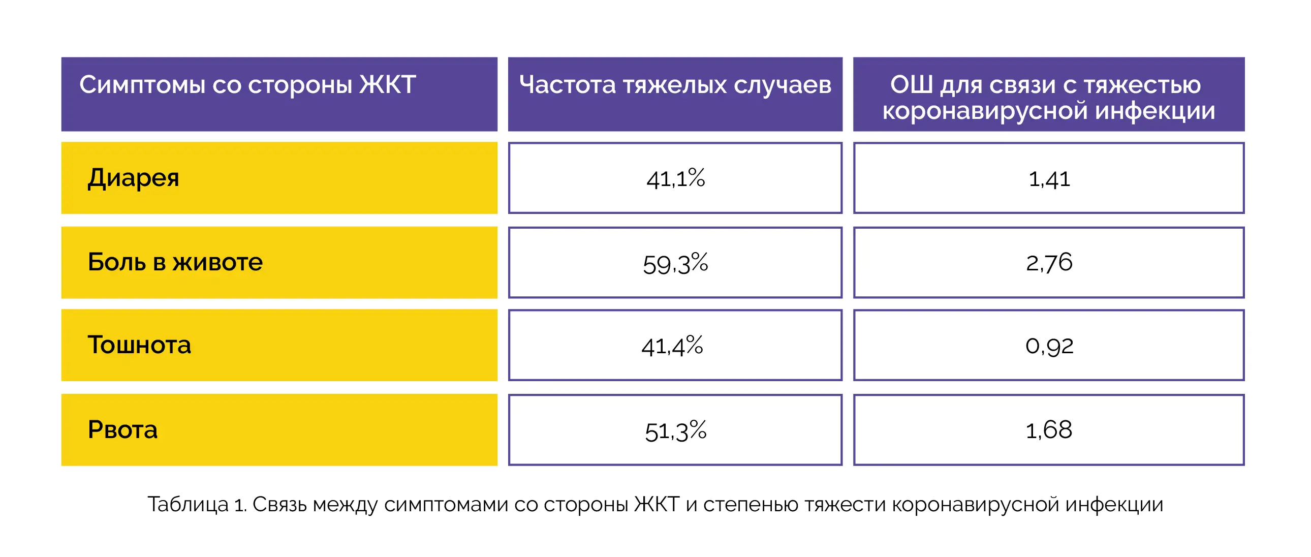 Целью данного исследования была оценка связи между симптомами со стороны ЖКТ и степенью тяжести коронавирусной инфекции.