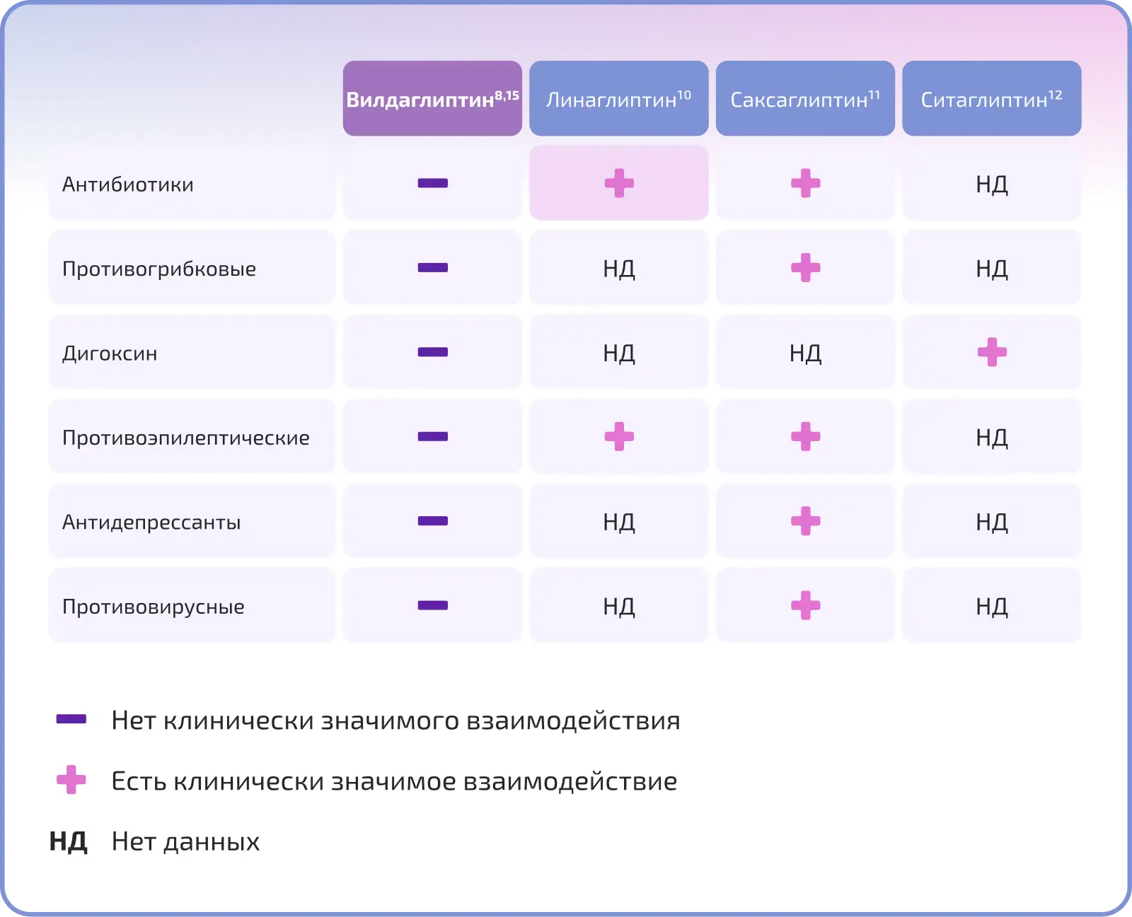 По совокупности результатов большого количества исследований среди иДПП-4 наибольший эффект в отношении параметров углеводного обмена продемонстрировал вилдаглиптин.